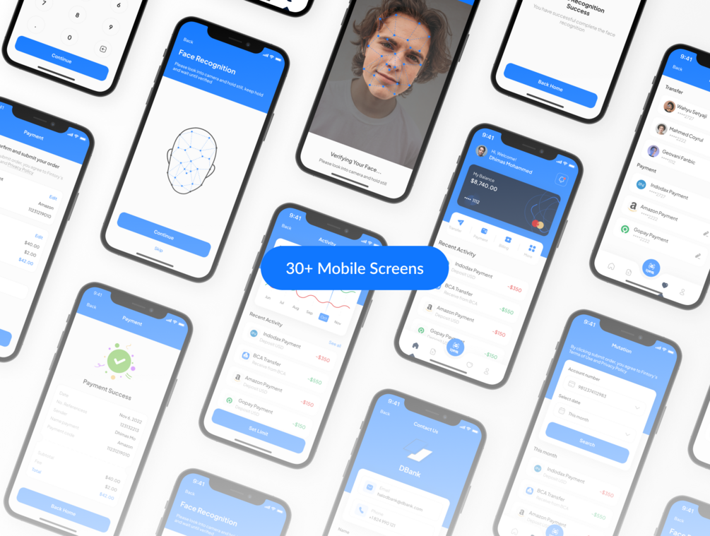 DBank is UI KIT for Mobile Banking on Mobile, designed with modern design trends without leaving a shopping feel. Small or large scale and with modern style E-commerce Illustration. Suitable for all businesses or startups that provide services. Modifying the template is quite simple.