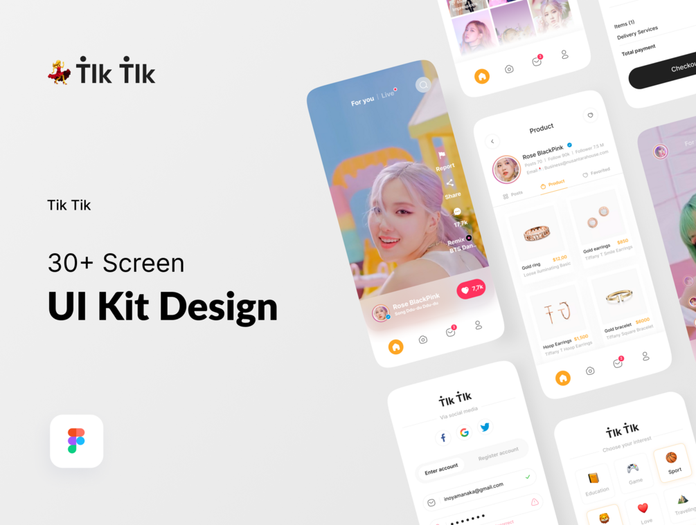 Tik Tik is UI KIT for social media that allows users to create, watch, discover and share short videos shot on cellphones. Suitable for all businesses or startups that provide services. Modifying the template is quite simple.